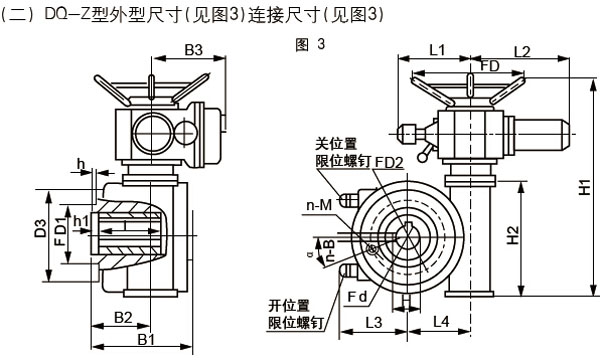 3、本装置符合《阀门电动装置技术条件》(ZBJ1600z-87)的规定,手轮与输出轴转向一致,顺时针为关,逆时针为开。