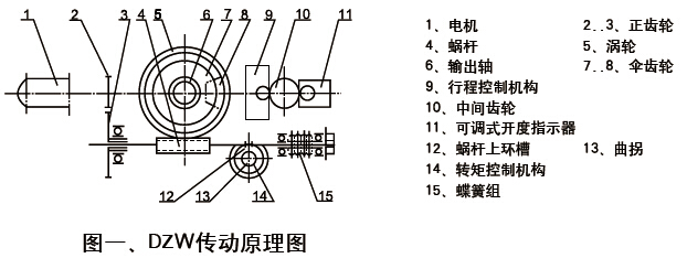 控制机构由转矩控制机构、行程控制机构及可调式开度指示器组成,用以控制阀门的开、关和阀位指示。